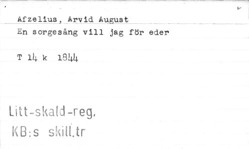 //// Afzelius, Arvid August //// En sorgesång vill jag för eder //// T 14 k 1844 //// litt-skald-reg, //// KB:s s dit.tr ////