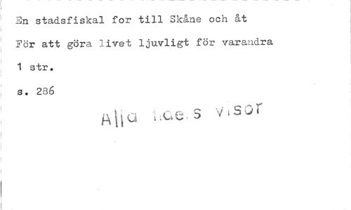 //// En stadsfiskal for till Skåne och åt //// För att göra livet ljuvligt för varandra 1 str. //// s. 286 //// s visor ////