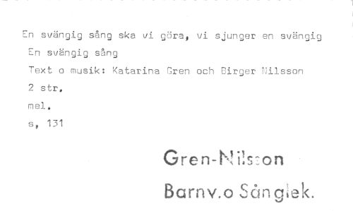 //// En svängig sång ska vi göra, vi sjunger en svängig En svängig sång //// Text o musik: Katarina Gren och Birger Nilsson //// 2 str, mel. //// s, 131 //// Gren-N ils :on //// Barnv.o Sång 1 //// ek. ////