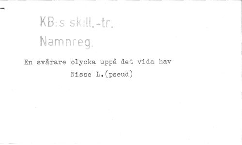 //// KB:s sk. //// Namnreg. //// En svårare olycka uppå det vida hav //// Nisse L.(pseud) ////