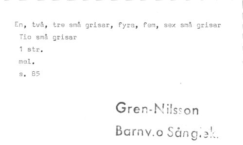 //// En, två, tre små grisar, fyra, femp sex små grisar Tio små grisar //// 1 str. //// mal. //// s. 85 //// Gren-h hss-on Barnv.o ////