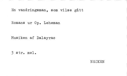 //// En vandringsman, som vilse gått Romans ur Op. Leheman //// Musiken af Dalayrac //// 3 str. mel. //// NECKEN ////