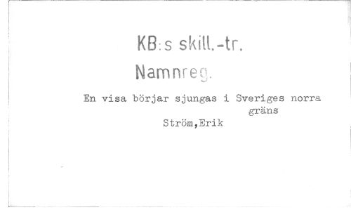 //// KB:s skill.-tr. //// Namnregi. //// En visa börjar sjungas i Sveriges norra //// gräns //// Ström, Erik ////