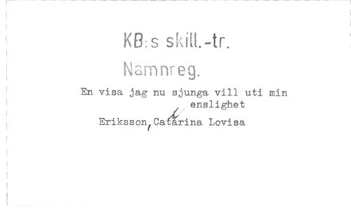 //// KB:s ski[1.-tr. //// NciniI eg. //// En visa jag nu sjunga vill uti min //// enslighet //// Erikssons Ca rina Lovisa ////