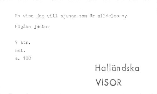 //// En visa jag vill sjunga som är alldeles ny Högåsa jäntor //// 7 str. mel. //// s. 100 //// Halländska //// VISOR ////