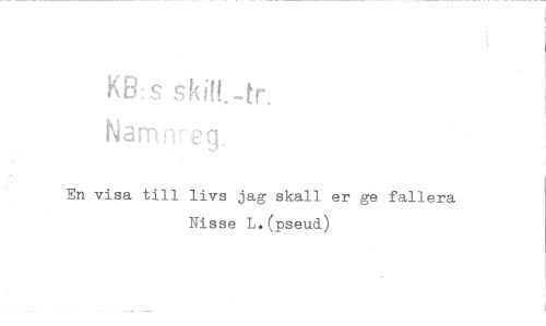 //// KB:s skilt-fr //// Nam,-- eg. //// En visa till livs jag skall er ge fallera //// Nisse L.(pseud) ////