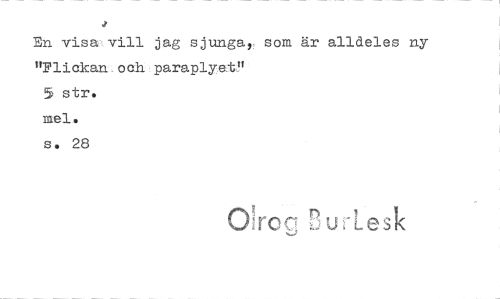 //// J //// En visa vill jag sjunga, som är alldeles ny "Pliakan oah paraplyet!' //// 5 str. //// mel. s. 28 //// Olrog nulesk ////
