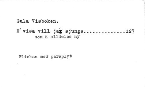 //// Gula Visboken. //// E' visa vill jai sjunga 127 //// som ä alldeles ny //// Flickan med paraplyt ////