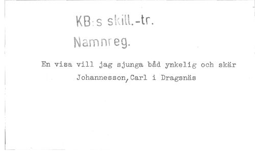 //// KB:s skitt.-tr. //// Narnnreg. //// En visa vill jag sjunga båd ynkelig och skär //// Johannesson/Carl i Dragsnäs ////