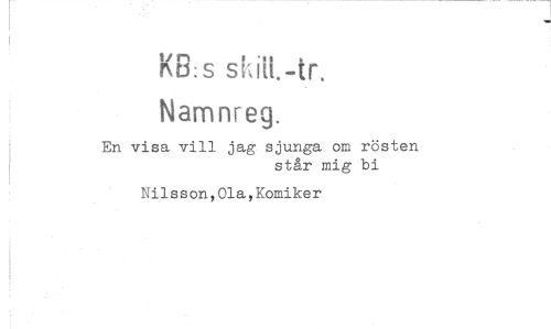 //// KB:s //// Namnreg. //// En visa vill jag sjunga om rösten //// står mig bi //// Nilsson,Ola,Komiker ////
