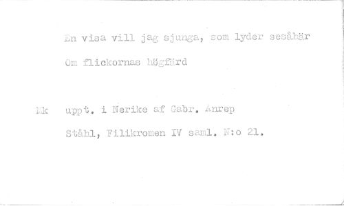 //// in visa vill jag sjunga, som lyder sesålär Om flickornas hOgrxd //// Lk uppt. i Nerike af Gabr. Inrep Filikromen IV sar N:o 21. ////