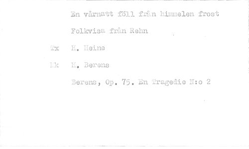 //// n vårnatt föll från hinmelen frost Folkvisa från Rehn //// Tx H. Reine //// li. Berens //// Berens Op. 75. Bn Tragedie N:o 2 ////