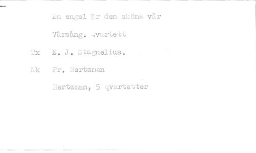 //// ii engel är den sköna vår Vårsång. ,,vartett //// 2x E, J, StaDlelius. //// Lik Fr, Lertzman //// Lertzmany 5 qvarte'cter ////