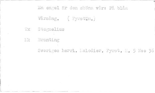 //// En enel Kr den sköna vår: P blåa //// Vårsång. ( Fyrstim.) //// lx Stagnelius //// kk Branting //// Sveriges herrl. Lelodier. Fyrst. k. 5 N:o 36 ////