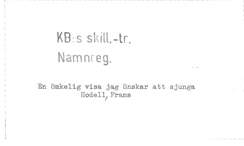 //// KB: s skitt.-tr. //// Namnreg. //// En ömkelig visa jag önskar att sjunga Hodell Frans ////