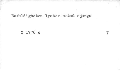 //// Enfaldigheten lyster också sjunga //// Z 1776 c 7 ////
