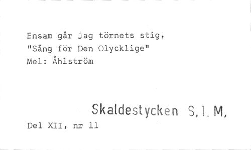 //// Ensam går jag törnets stig, "Sång för Den Olycklige" Mel: Åhlström //// Skaldestycken S, 1. M, //// Del XII, nr ll ////