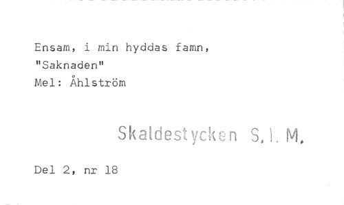 //// Ensam, i min hyddas famn, "Saknaden" //// Mel: Åhlström //// SkaLdest vck n S,1. . M. //// Del 2, nr 18 ////