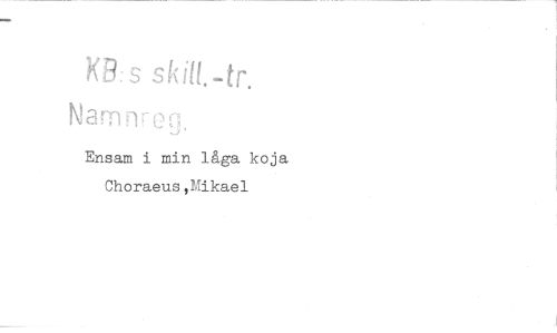 //// KB. s skill.-tr. //// Nar; n_ //// Ensam i min låga koja Choraeus,Mikael ////