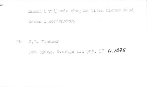//// lnsam i villande skog :Sn. liten bloms. stod Rosen i nordanskog, //// 1:12c C.L. Fischer //// )et sjung. Sverige III pag. 7 ////