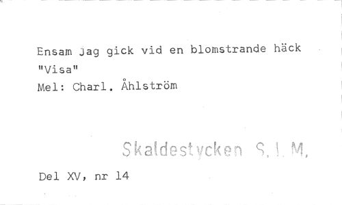 //// Ensam jag gick vid en blomstrande häck "Visa" //// Mel: Charl. Åhlström //// Skakiestycken //// Del XV, nr 14 ////