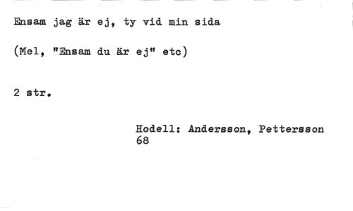 //// Ensam jag är ej, ty vid min sida (Mel, "Ensam du är ej" etc) //// 2 str. //// Hodell: Andersson, Pettersson 68 ////