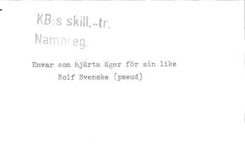 //// KB:s //// Envar som hjärta äger för sin like Rolf Svenske (pseud) ////