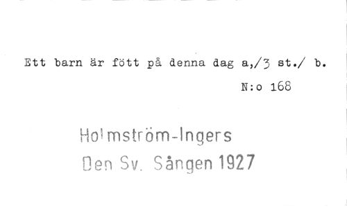 //// Ett barn är fitt på denna dag a,j3 st./ b. //// N:o 168 //// Ho rnström-Ingers //// Den Sv. Sången 1927 ////