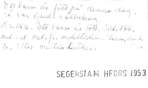 //// J //// ~IAN //// brut //// A: 7-, /4-6; , //// 7y. , i fil 644.7-aiic . //// SEGERSTAM HFDRS 1953 ////