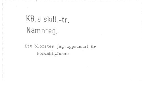//// KB:s skill.-tr. //// Namnreg. //// Ett blomster jag upprunnet är Nordahl,Jonas ////