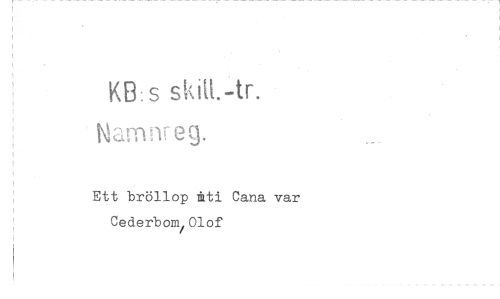 //// KB1s snitt.-tr. //// N-mnt.-ecj. //// Ett bröllop *ti Cana var Cederbom Olof ////
