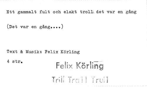 //// Ett gammalt fult och elakt trollldet var en gång (Det var en gång....) //// Text & Musik: Felix Körling //// 4 str, Fetix Körting //// i i k.. ////