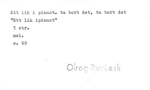 //// Ett lik i pianot. ta bort det, ta bort det "Ett lik. ipianot" //// 3 str. //// mel. //// s. 69 //// ro c ulrek ////