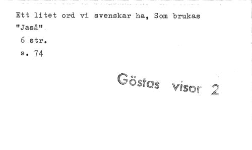 //// Ett litet ord vi svenskar ha, Som brukas "Jaså" //// 6 str. s. 74 //// Gästas visor- ////