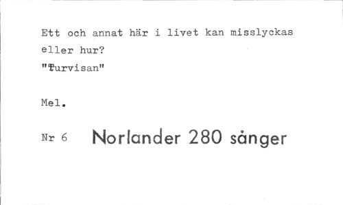 //// Ett och annat här i livet kan misslyckas eller hur? //// "Turvisan" //// Me 1. //// Nr 6 Norlander 280 sånger ////