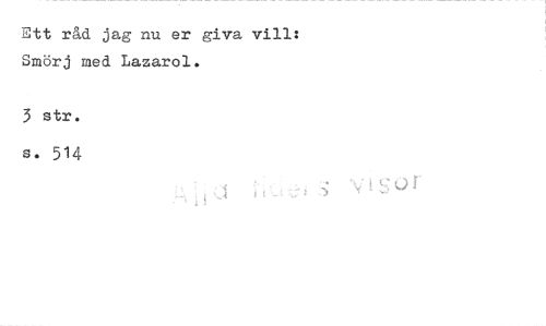 //// Ett råd jag nu er giva vill: Smörj med Lazarol. //// 3 str. s. 514 ////