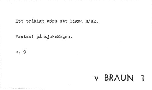 //// Ett tråkigt göra att ligga sjuk. Fantasi på sjuksängen. //// s. 9 //// v BRAUN 1 ////