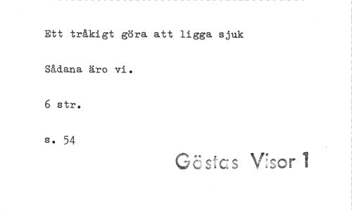 //// Ett tråkigt göra att ligga sjuk Sådana äro vi. //// 6 str. //// s. 54 //// GEs cs Visor ////