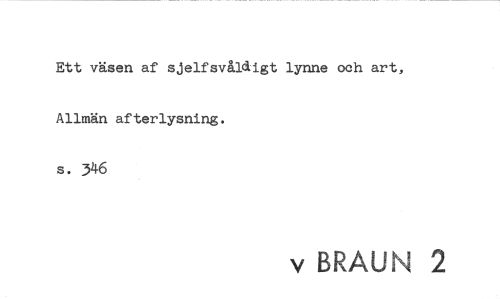//// Ett väsen af sjelfsvåldigt lynne och art, Allmän afterlysning. //// s. 346 //// v BRAUN 2 ////
