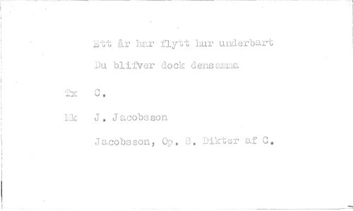 //// tt år har flytt hur underbart Du blifVer dock densamma //// Tx C. //// LIK J. Jacobsson //// Jacobsson) Op. B. Dikter af C. ////