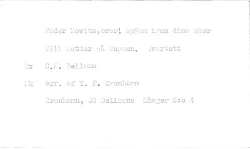 //// der Movitz,bror! spänn igen dina skor _ill Lutter på 2uopen. ,Irartett //// Tx C.M. Bellman //// Lk arr. af Y. P. Cronliamn //// Cronhamn, 30 3eilm2ns Sånger N:0 4 ////