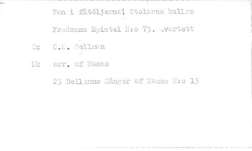 //// Fan i fåtöljern . Stolarna kullra //// Fredmans Epistel N:o 73. vartett //// Lic arr. af "gasas //// 25 Bellamns 2ånger af Nasus N:o 13 ////
