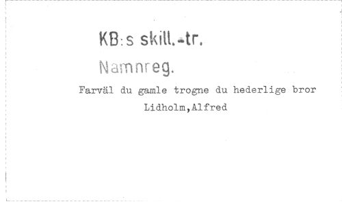 //// KB: s //// Namnreg. //// Farväl du gamle trogne du hederlige bror Lidholm,Alfred ////