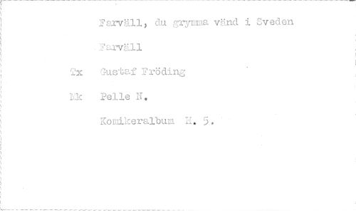 //// Faxväll, du gryta vänd i Syeden Farväll //// 52x Gustaf Fröding //// hic Pelle N. //// Komikeralbum H. 5. ////