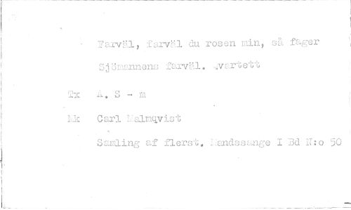 //// Tfarvn, farvKl du rosen min, sgt fager Sjömannens farvEl. :4-vartetl; //// Tx S m //// U Carl 'Ealmqvist //// Samling af flers.4 I:andssange 1 Bd i:o 50 ////
