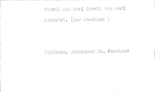 //// Farväl min fart farväl min mor: Afskedet. (Der Abschied ) //// 'Frykholm, folkvisor fr, Vermland ////