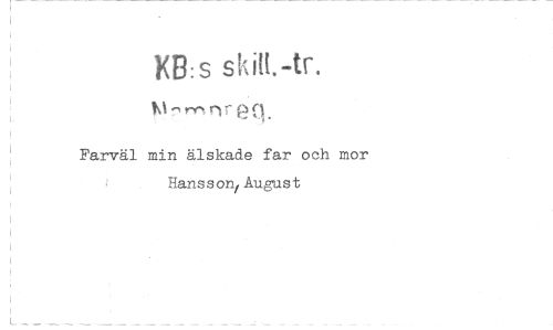 //// KB:s //// hl rn nr 6n. //// Farväl min älskade far och mor Hansson/ August ////