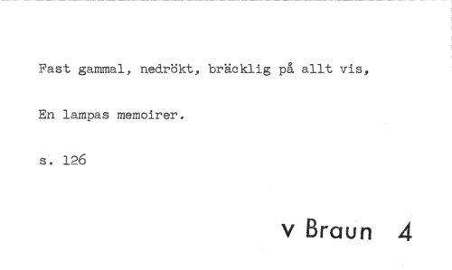 //// Fast gammal, nedrökt, bräcklig på allt vis, En lampas memoirer. //// s. 126 //// v Braun 4 ////