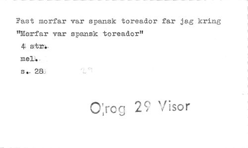 //// Fäst morfar var spansk toreadör far jag kring nlorfar var spansk toreador" //// 4 atn.. //// meLs //// s•. //// rr 1 V Visor ////