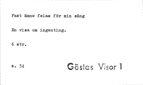 //// Fast ämne felas för min sång En visa om ingenting. //// 6 str. //// 3. 34 Göstcs Vsor 1 ////